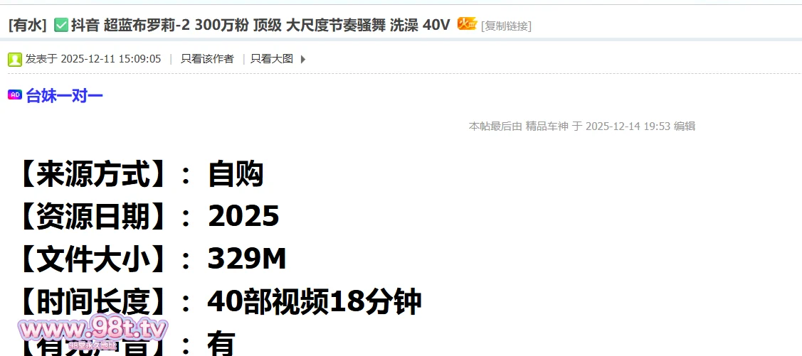 【资源名称】:抖音 超蓝布罗莉-2 300万粉 顶级 大尺度节奏骚舞 洗澡