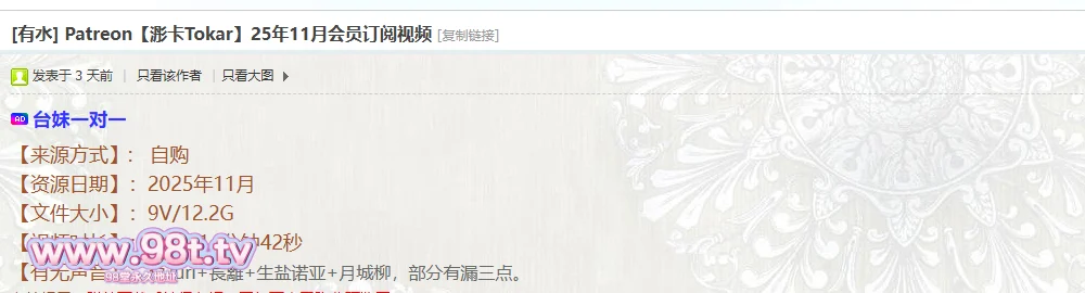 【资源名称】:Padiveon【浵卡Tokar】25年11月会员订阅视频