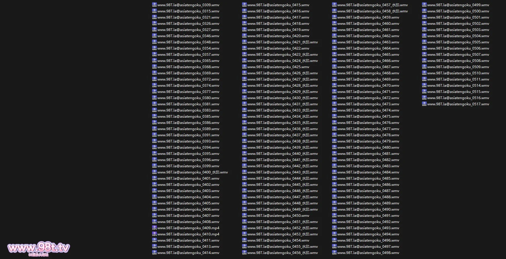 个别是mp4片头带水印,大概10多部是wmv片头带某族水印,还有一些转码+水印的没收